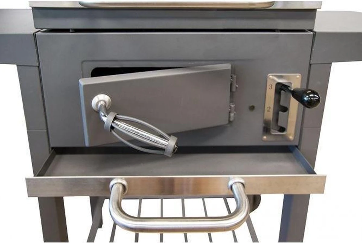 Met deze buitenkeuken van El Fuego slaagt elk barbecuefeest! Deze functionele barbecue onderscheidt zich van andere barbecues door de in hoogte verstelbare kolenbak. Hiermee verplaatst u de gloeiende briketten eenvoudig dichter of verder van de ingrediΓ«nten op het grilrooster. Ideaal voor als het ene gerecht op een hogere temperatuur gegrild moet worden dan het andere gerecht. Daarnaast heeft de Ottawa S een stevig onderstel en een aslade om de barbecue eenvoudig weer schoon te krijgen.