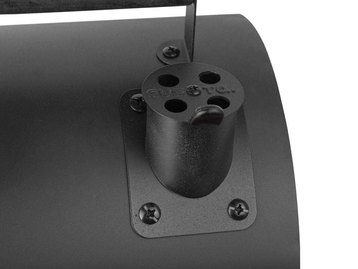 GUSTA BBQ KING. Traditionele BBQ en Smoker in één. Compact model, ideaal voor op terras / balkon en camping. Vlees en vis een hele dag op een lage temperatuur laten garen en het een verfijnde rooksmaak meegeven is dΓ© trend. Deze rookoven barbecue is te gebruiken als normale kolen bbq en rook bbq door de verschillende compartimenten binnen in de bbq. De Gusta Smoker BBQ beschikt over een handig extra rekje op de bodem van de BBQ, welke gebruikt kan worden als houtskool/briket starter. De bbq is voorzien van verschillende instelbare lucht toevoeren evenals een thermometer. Lekker een groot stuk vlees een hele dag laten garen op je BBQ en βs avonds de vuurkorf aan, met een glas glΓΌhwein genieten van een heerlijk stuk rib roast of pulled pork. Daar word je warm van. Naast het feit dat hij rookt is het ook een leuk klein grilletje. Je kan er zo 10 tot 15 sateetjes op kwijt. Of 2 hamburgers en broodjes. Rough & Authentic!